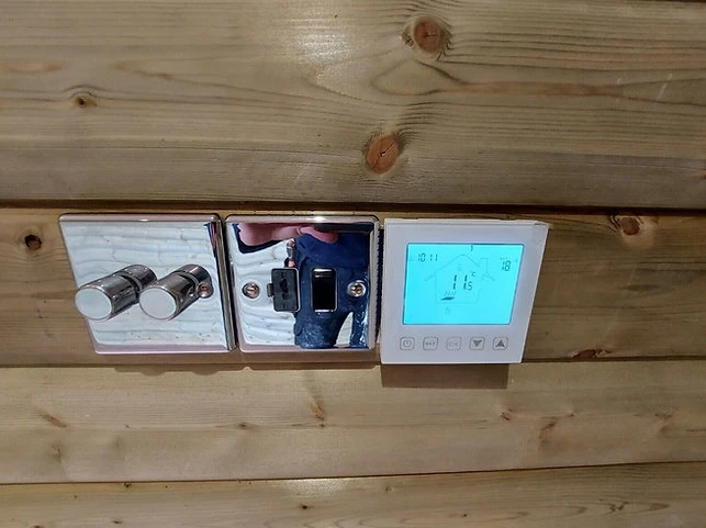 – Chauffage électrique par le sol avec thermostat numérique programmable.