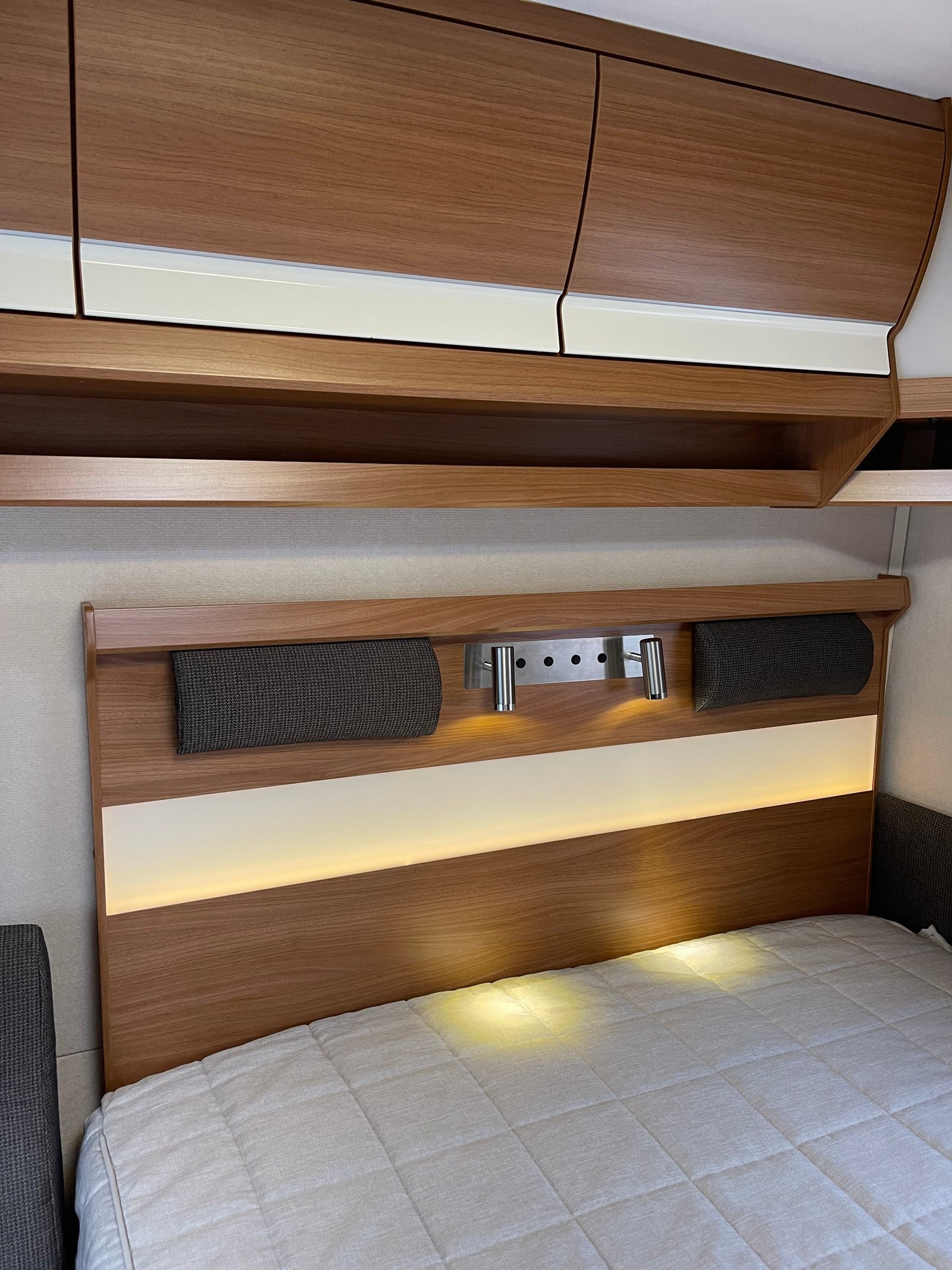 Lit double à l’arrière avec un coin salon à côté pouvant être transformé en lit.