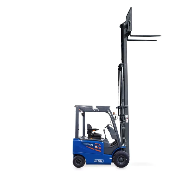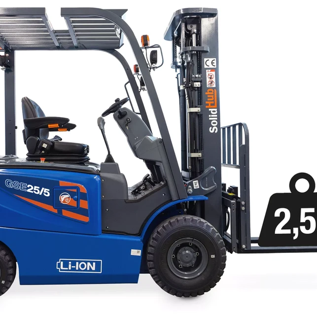 Comparée aux chariots électriques traditionnels équipés d’une batterie plomb-acide, la batterie lithium-ion du GSE25/5 présente de nombreux avantages. Ainsi, le temps de charge est plusieurs fois plus court. Le rendement de la charge est également nettement meilleur. De plus, le nombre de cycles de charge possibles jusqu’à la mise hors service du bloc-batterie, et donc la durée de vie, augmente considérablement lorsqu’une batterie lithium-ion est utilisée. La batterie lithium-ion du chariot élévateur électrique présente en outre une densité énergétique particulièrement élevée. C’est pourquoi la durée d’utilisation est particulièrement élevée.
