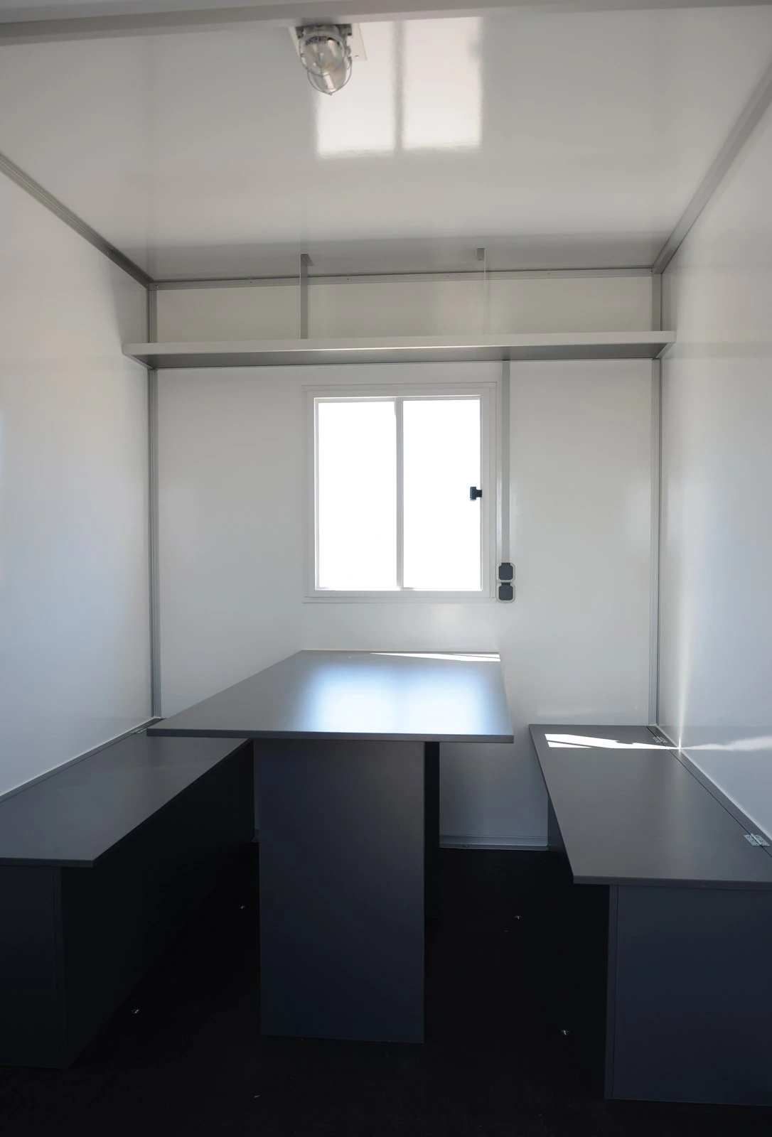 – 1 fenêtre coulissante 750 x 850 mm avec les volets de fermeture en acier