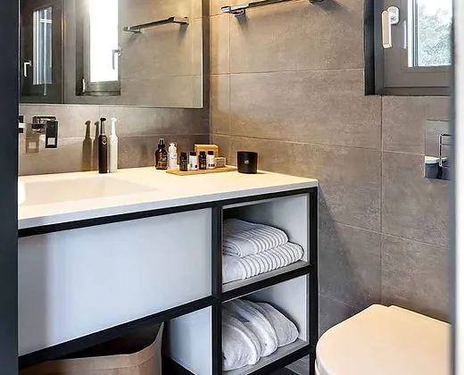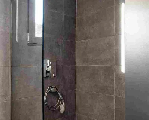 1 salle de bain avec douche, lavabo et WC (chauffe-eau compris)