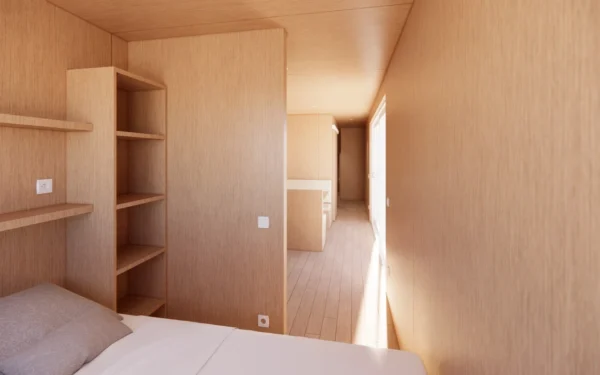 REVÊTEMENTS : Sol Linoleum | Mur Contre-plaqué vernis 12mm | Plafond Contre-plaqué vernis 12mm